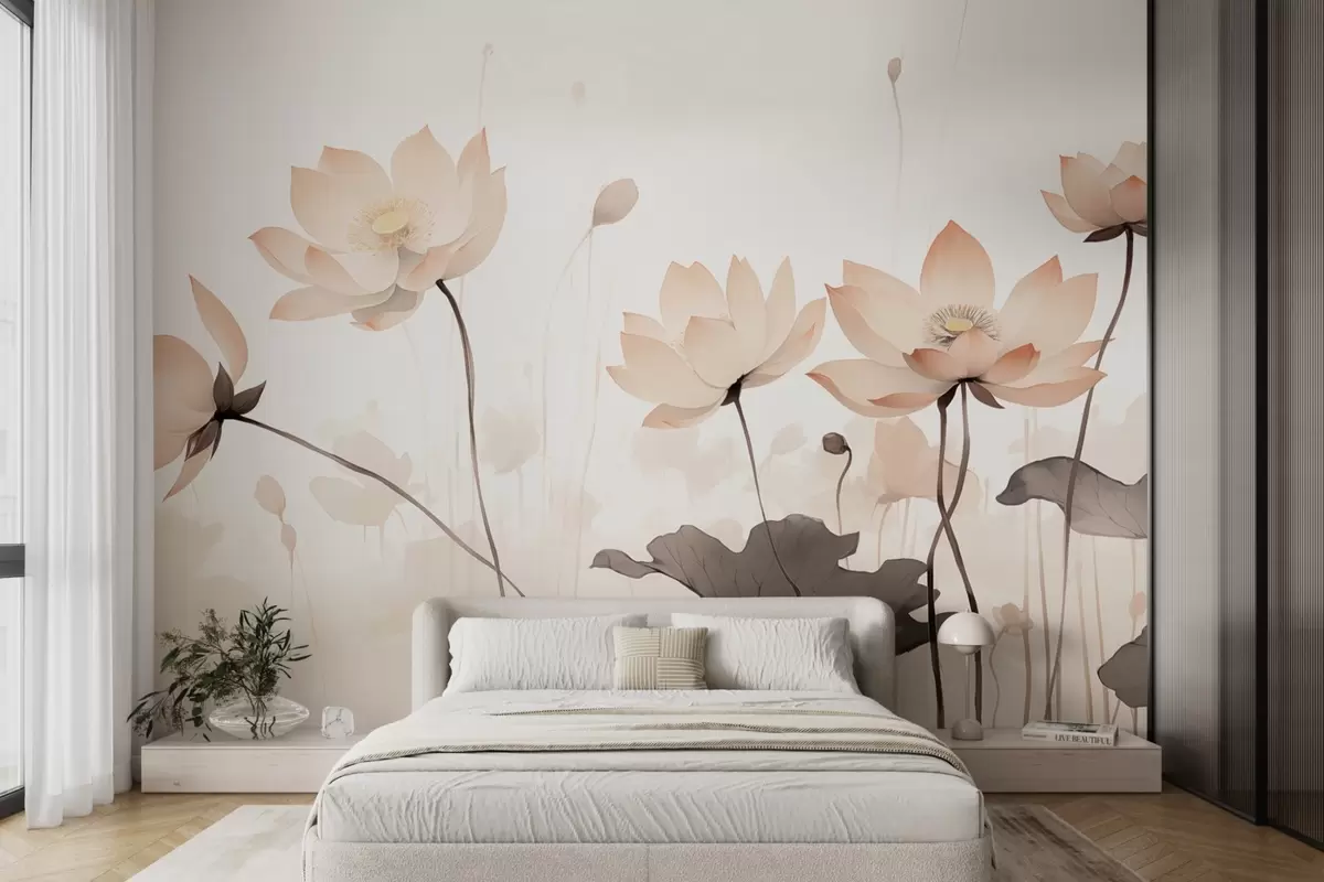 Τοιχογραφίες Νερολούλουδα σε ντελικάτους ανοιχτούς τόνους σε στυλ ακουαρέλας Nr. w09035