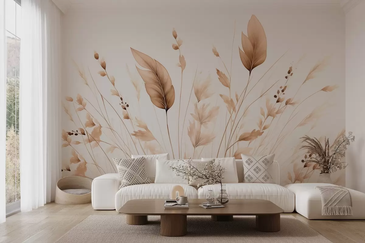 Τοιχογραφίες Ένας χορός από αέρινα ξερά χόρτα στον άνεμο σε ήρεμα μπεζ χρώματα Nr. w09045
