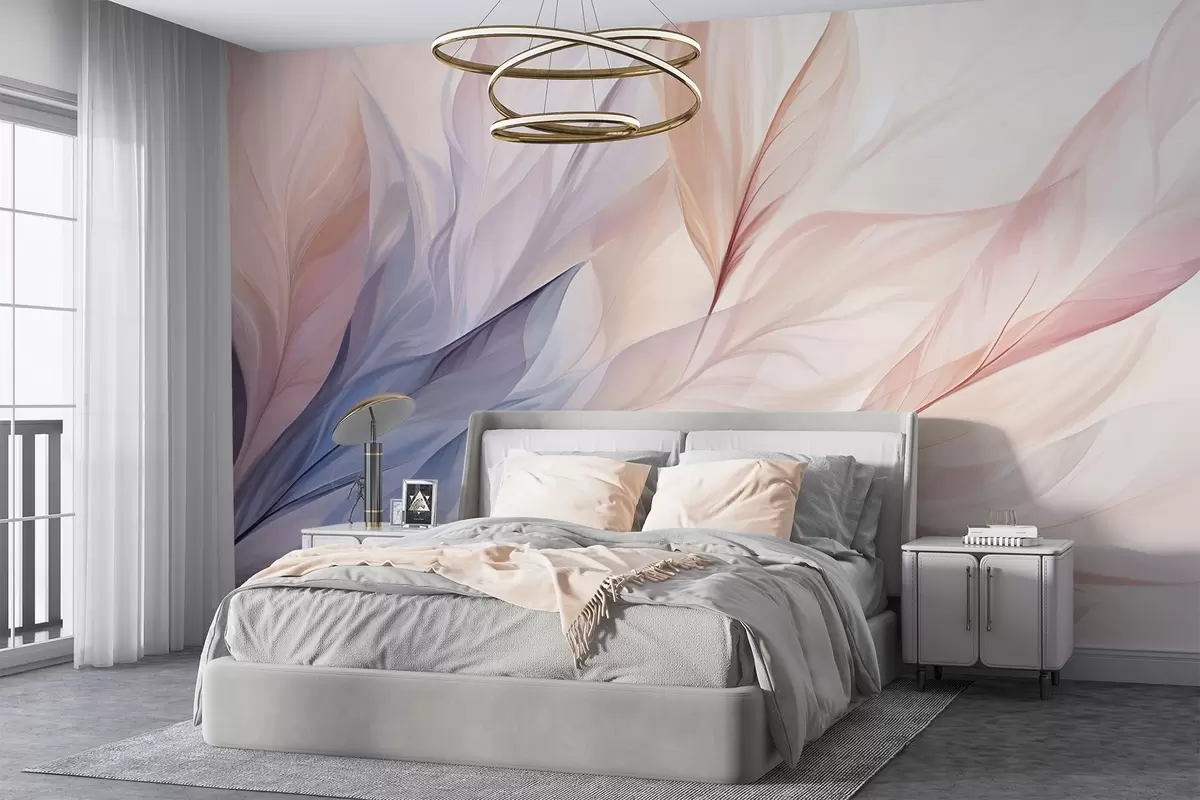 Τοιχογραφίες Αφηρημένο σχέδιο λουλουδιών με ρέοντα πέταλα σε παστέλ αποχρώσεις του ροζ, του ροδακινί και του μπλε, δημιουργώντας μια απαλή και ονειρική σύνθεση Nr. w09049