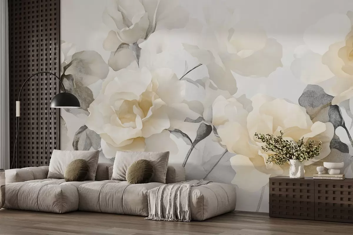 Τοιχογραφίες Λεπτά vintage λουλούδια με υφή Nr. w09071v2