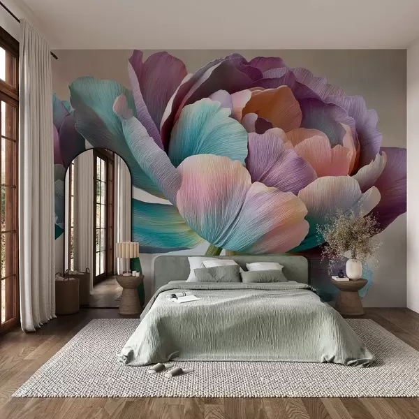 Τοιχογραφίες Πολύχρωμο λουλούδι στο στυλ του χαρτιού κρεπ Nr. w09076