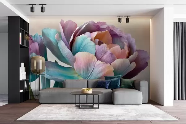 Τοιχογραφίες Πολύχρωμο λουλούδι στο στυλ του χαρτιού κρεπ Nr. w09076