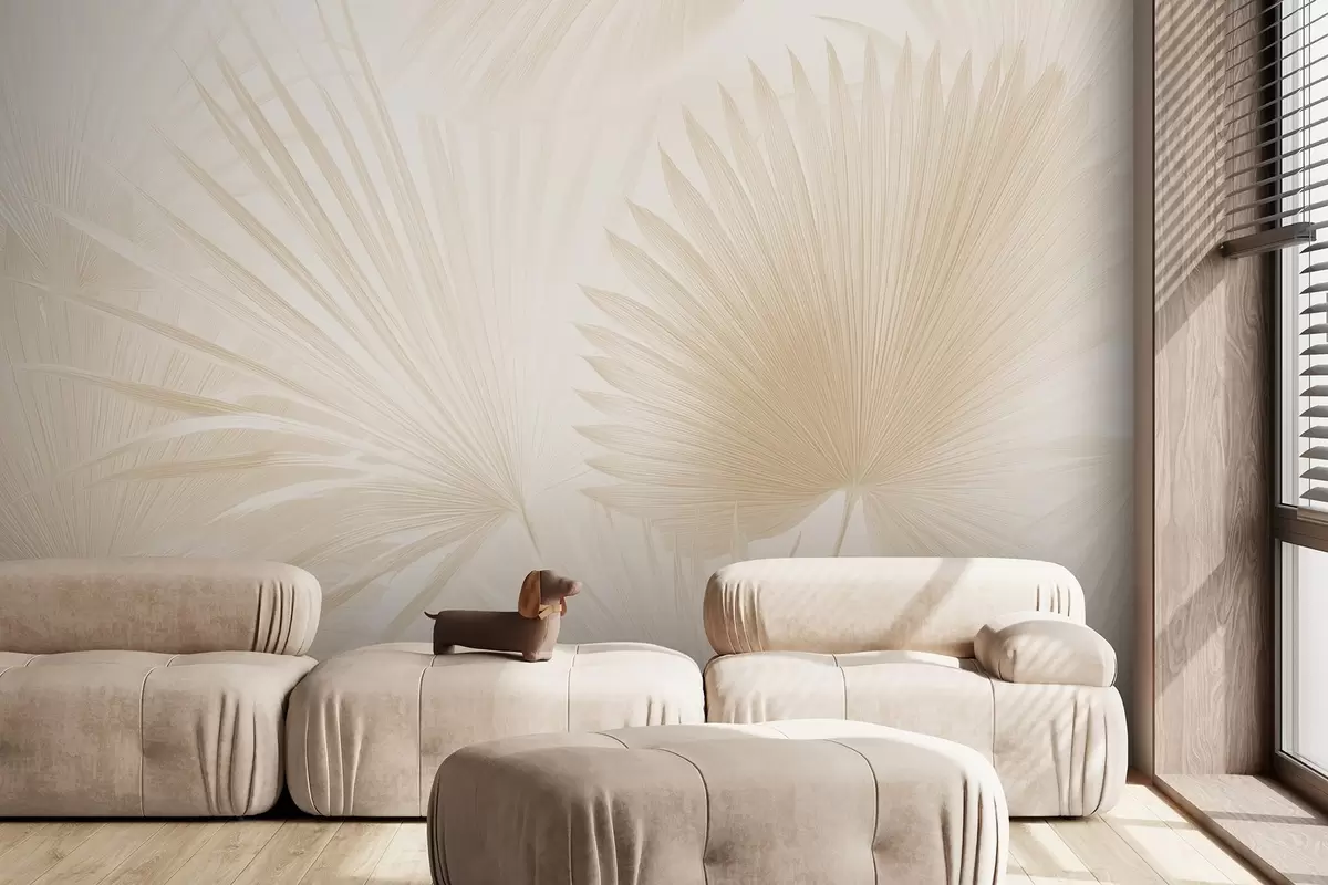 Τοιχογραφίες Μαλακοί ανεμιστήρες τροπικών φύλλων σε ελαφρύ φόντο Nr. w09084v1