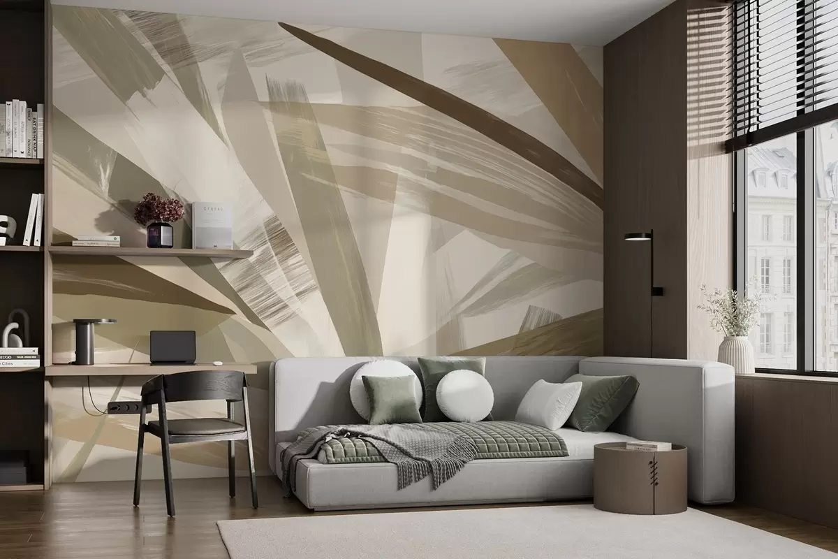 Τοιχογραφίες Αφηρημένα φύλλα σε πράσινους και μπεζ τόνους Nr. w09091