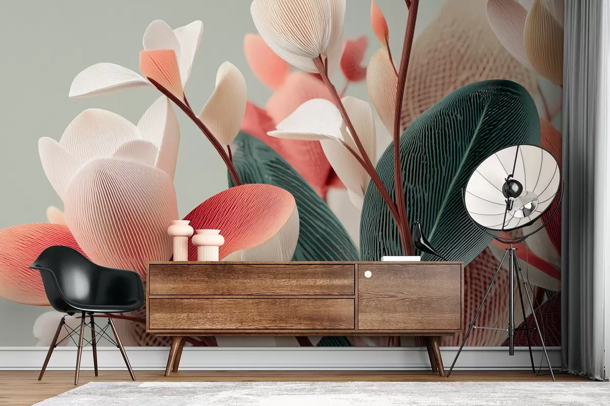 Τοιχογραφίες Υφή λουλουδιών και φύλλων σε παστέλ και πράσινους τόνους Nr. w09094