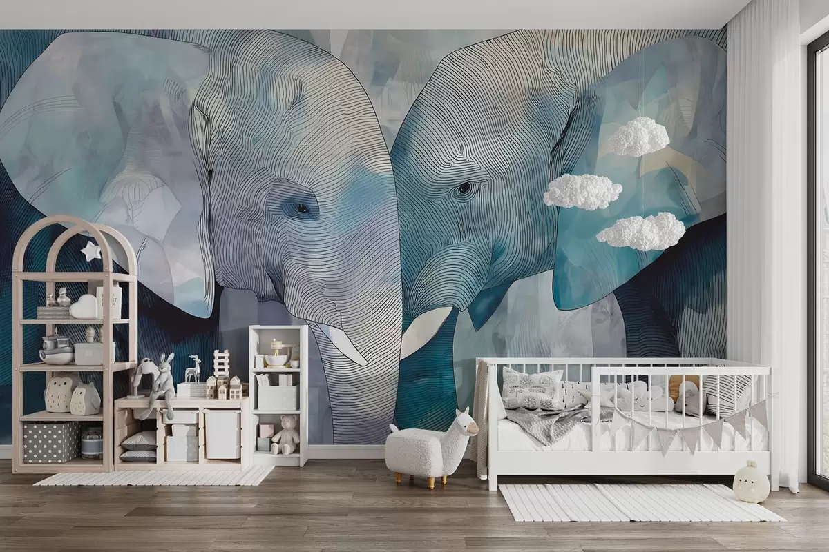 Τοιχογραφίες Χαριτωμένο μπλε ελέφαντες σε στυλ ακουαρέλας Nr. w09098