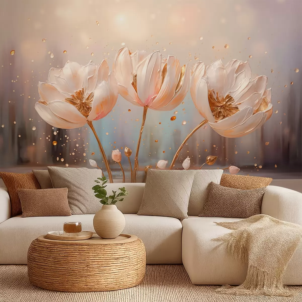 Τοιχογραφίες Λεπτά ογκώδη λουλούδια στην ανατολή του ήλιου Nr. w09148