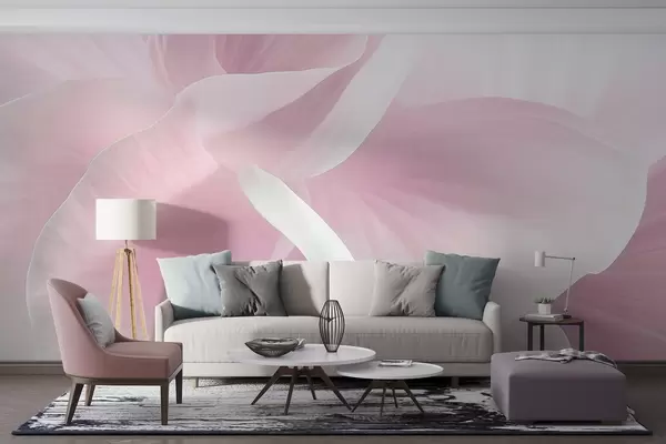 Τοιχογραφίες Αφηρημένη υφή λουλουδιού με λεπτά πέταλα, απαλός φωτισμός, κομψή σύνθεση, μινιμαλιστική αισθητική Nr. w09211v1