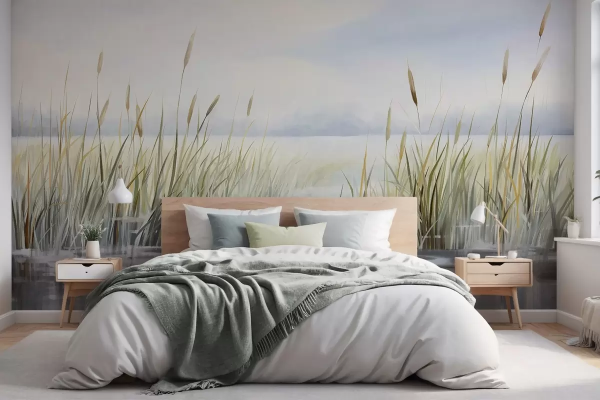 Τοιχογραφίες Μια υδατογραφία υφή ζωγραφική απομίμηση του τοπίου με λίμνη, γρασίδι, συννεφιασμένο ουρανό και θολό φόντο Nr. w09219