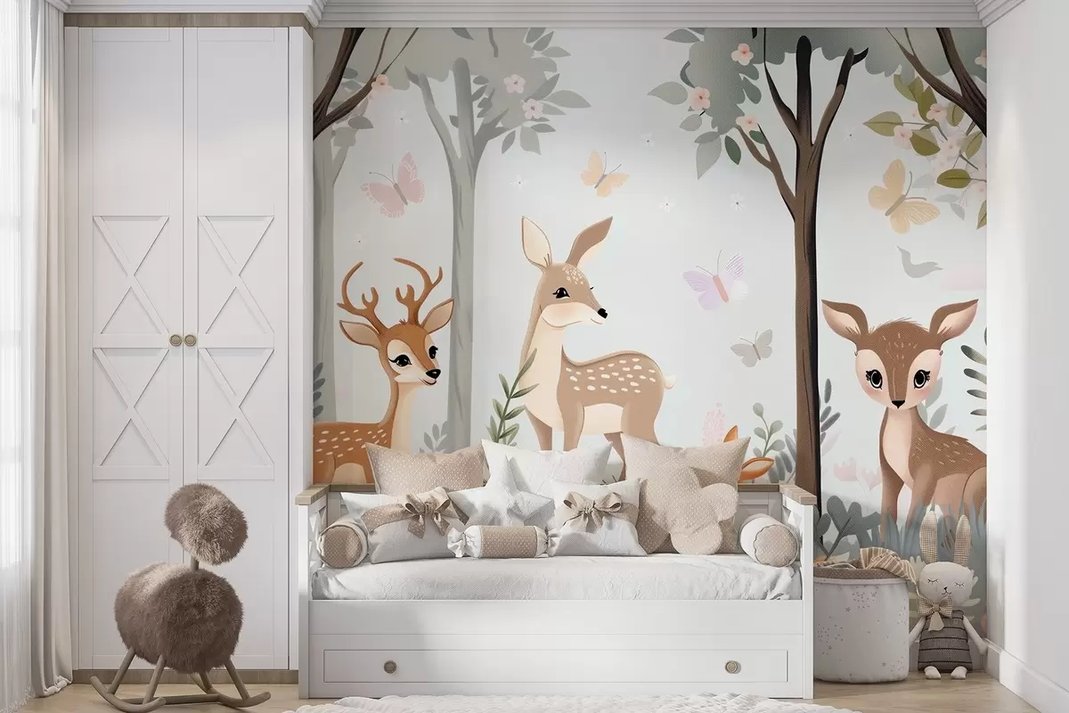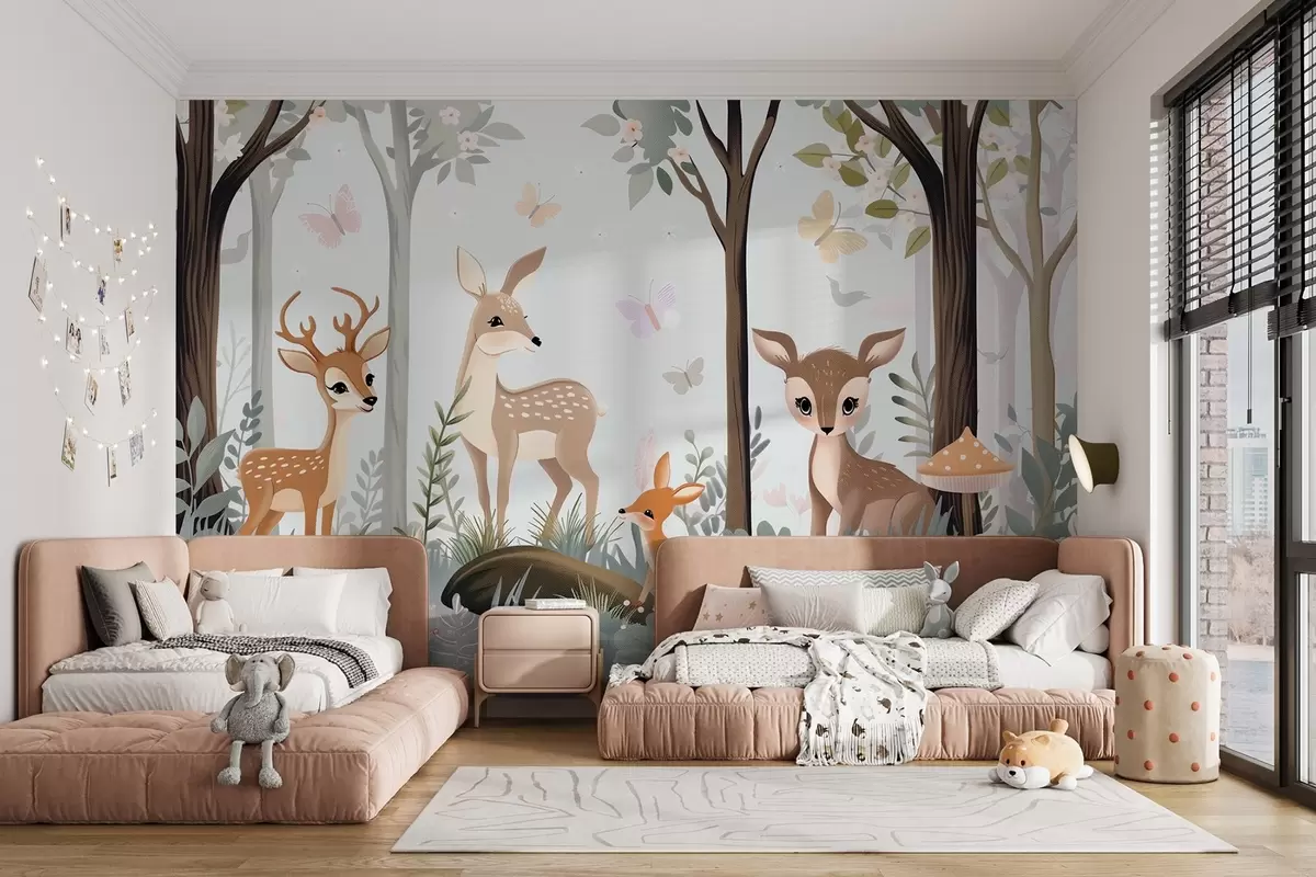 Τοιχογραφίες Ευφάνταστα ζώα του δάσους σε μπλε αποχρώσεις Nr. w09227v1