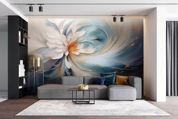 Τοιχογραφίες Αφηρημένο λουλούδι σε μπλε και πορτοκαλί τόνους Nr. w09270v1