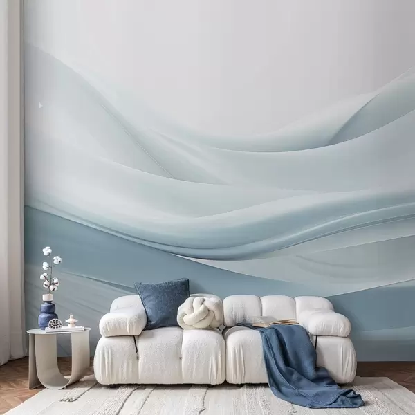 Τοιχογραφίες Μπλε υφασμάτινα κύματα σε μινιμαλιστικό αφηρημένο στυλ Nr. w09279v2
