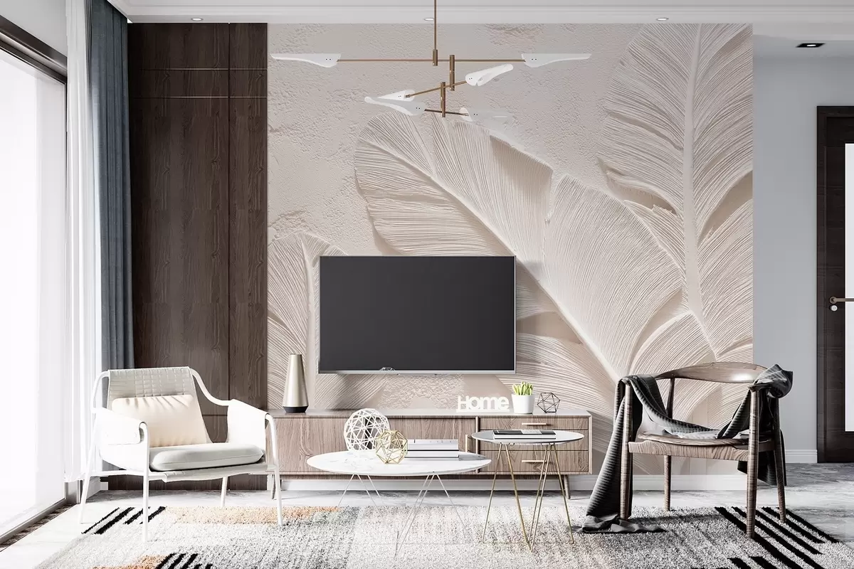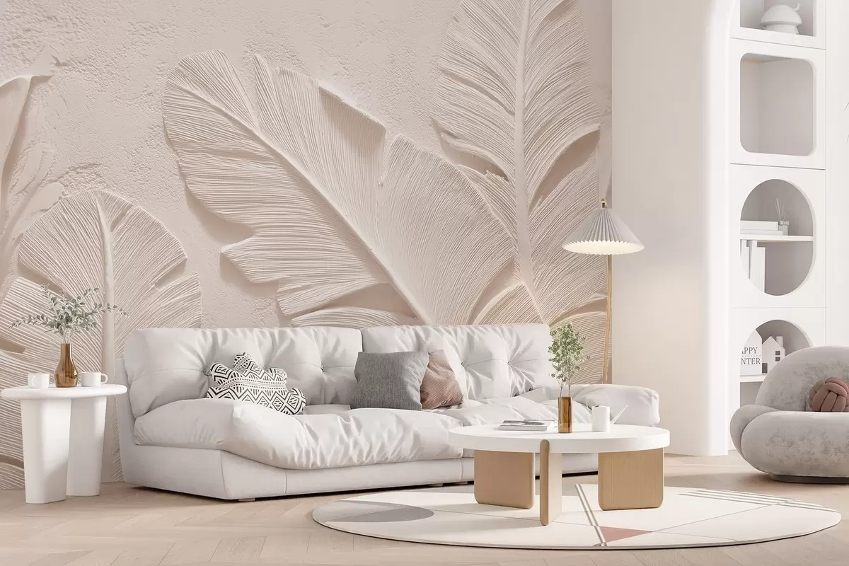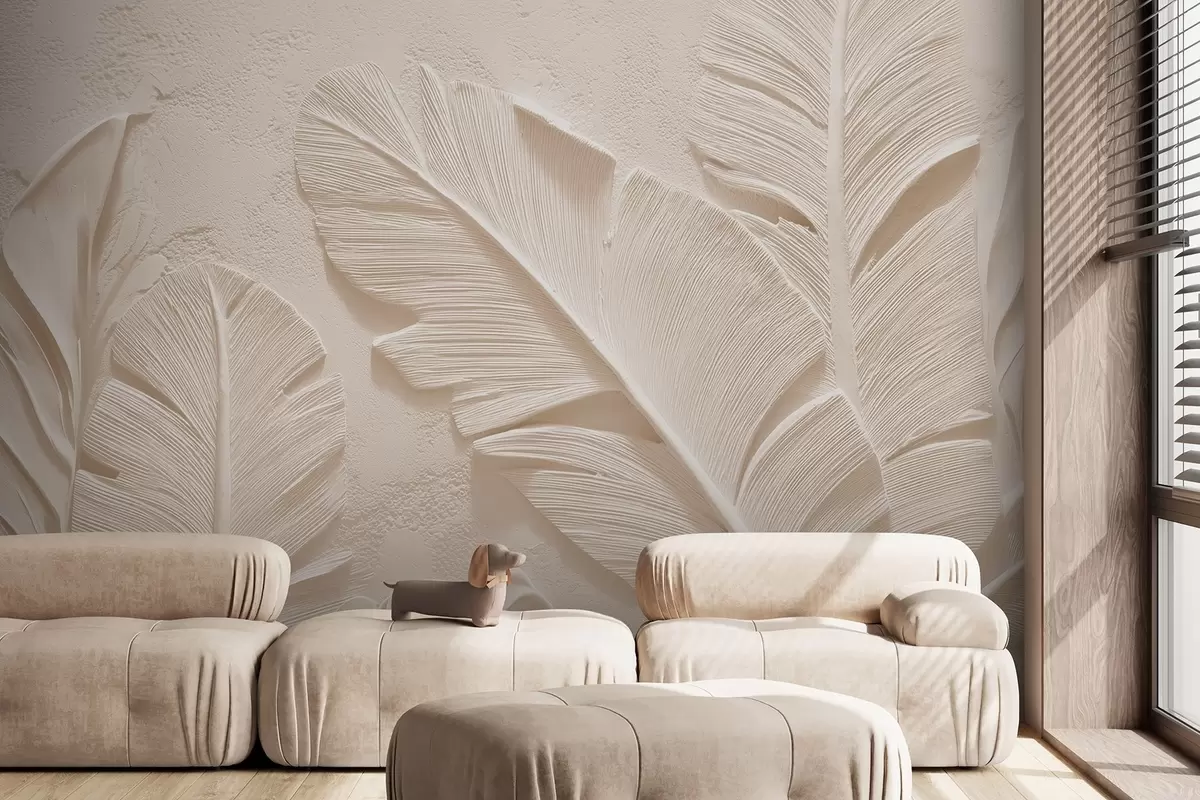 Τοιχογραφίες Φύλλα ανακούφισης σε ζεστούς τόνους μπεζ-άμμου Nr. w09307v1