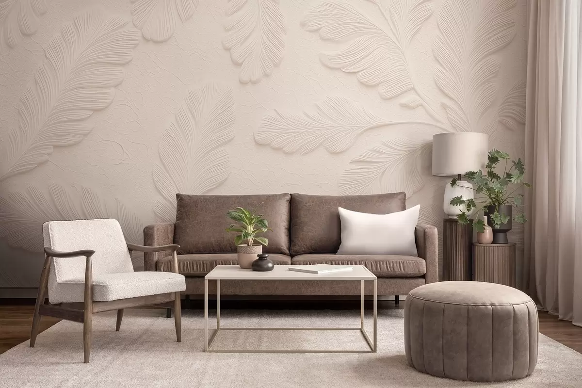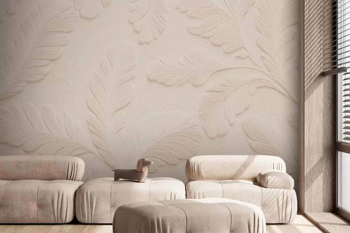 Τοιχογραφίες Ανάγλυφα φύλλα σε ανοιχτόχρωμο φόντο με ραγισμένο εφέ Nr. w09309