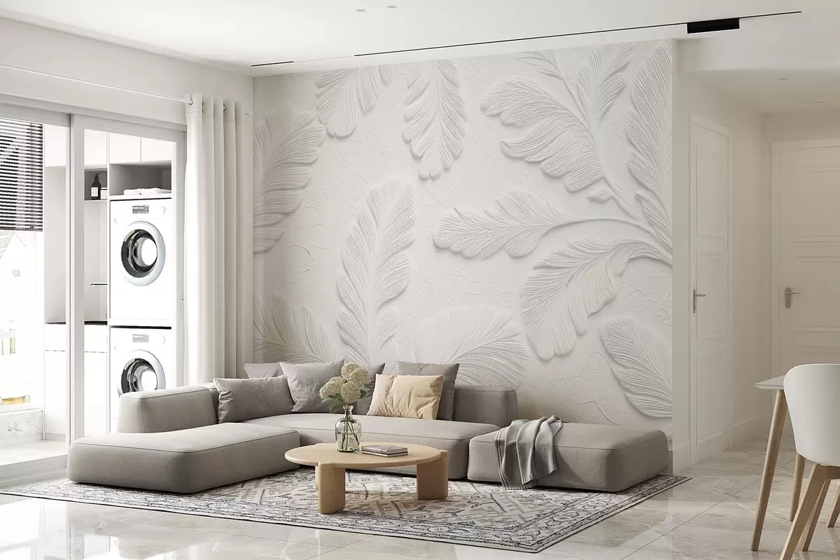 Τοιχογραφίες Φύλλα ανάγλυφα σε γκρι χρώμα με εφέ ραγισμένης υφής Nr. w09309v1