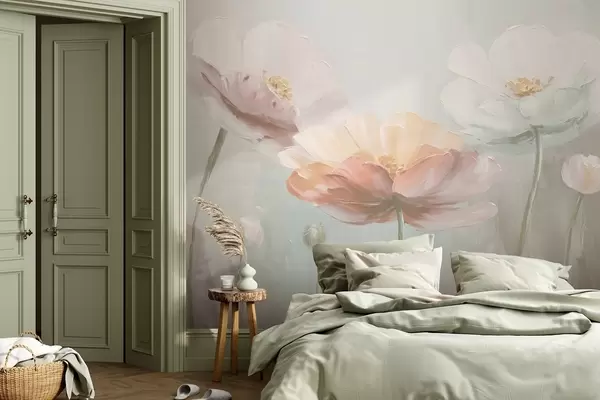 Τοιχογραφίες Ογκομετρικές παπαρούνες παστέλ σε στυλ ελαιογραφίας Nr. w09310v1