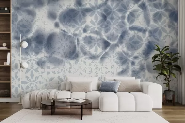 Τοιχογραφίες Αφηρημένη υφή τέχνης με μπλε floral print, ξεθωριασμένο και θολό αποτέλεσμα, δημιουργώντας μια απαλή και ονειρική ατμόσφαιρα Nr. w09322