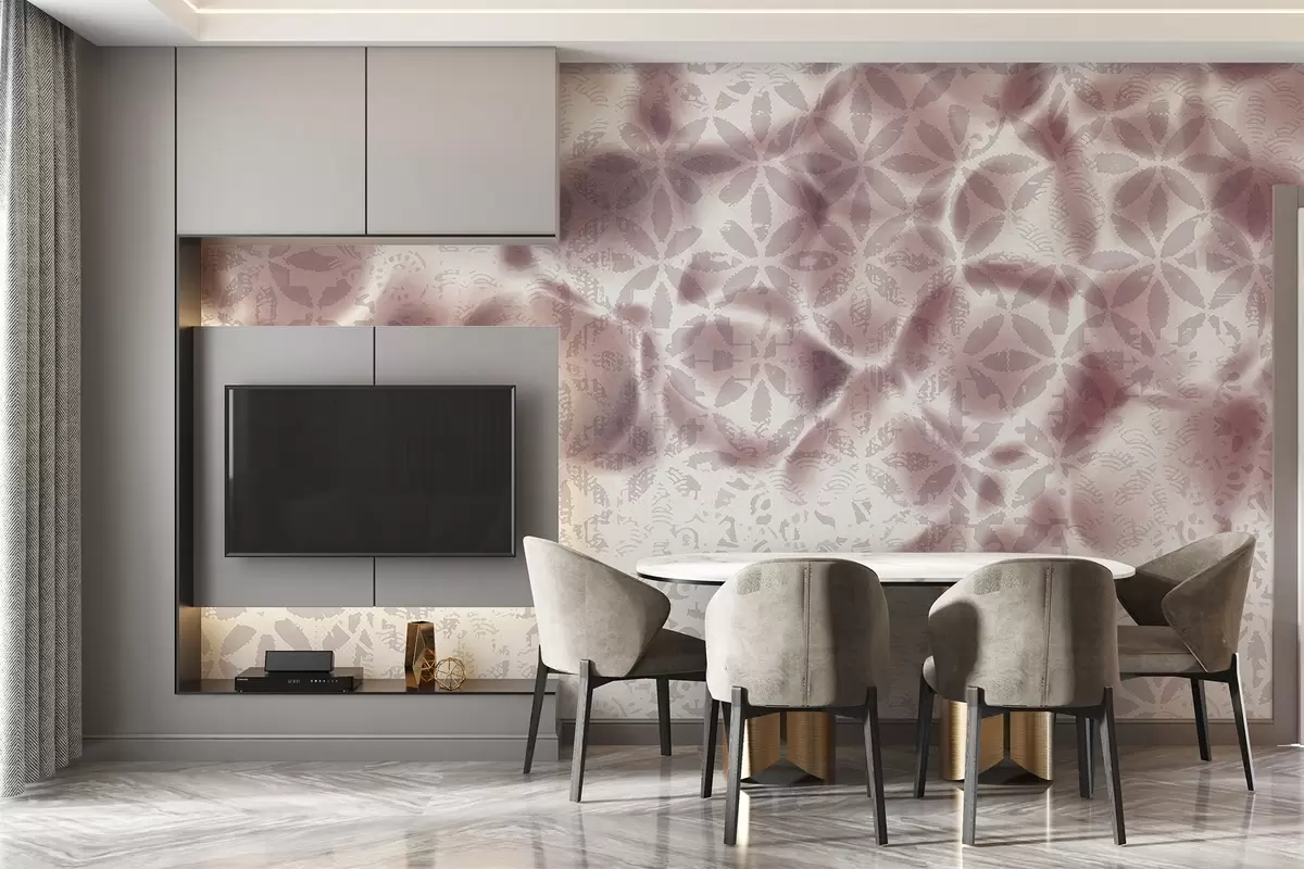 Τοιχογραφίες Αφηρημένη υφή τέχνης με bordo floral print, ξεθωριασμένο και θολό αποτέλεσμα, δημιουργώντας μια απαλή και ονειρική ατμόσφαιρα Nr. w09322v1