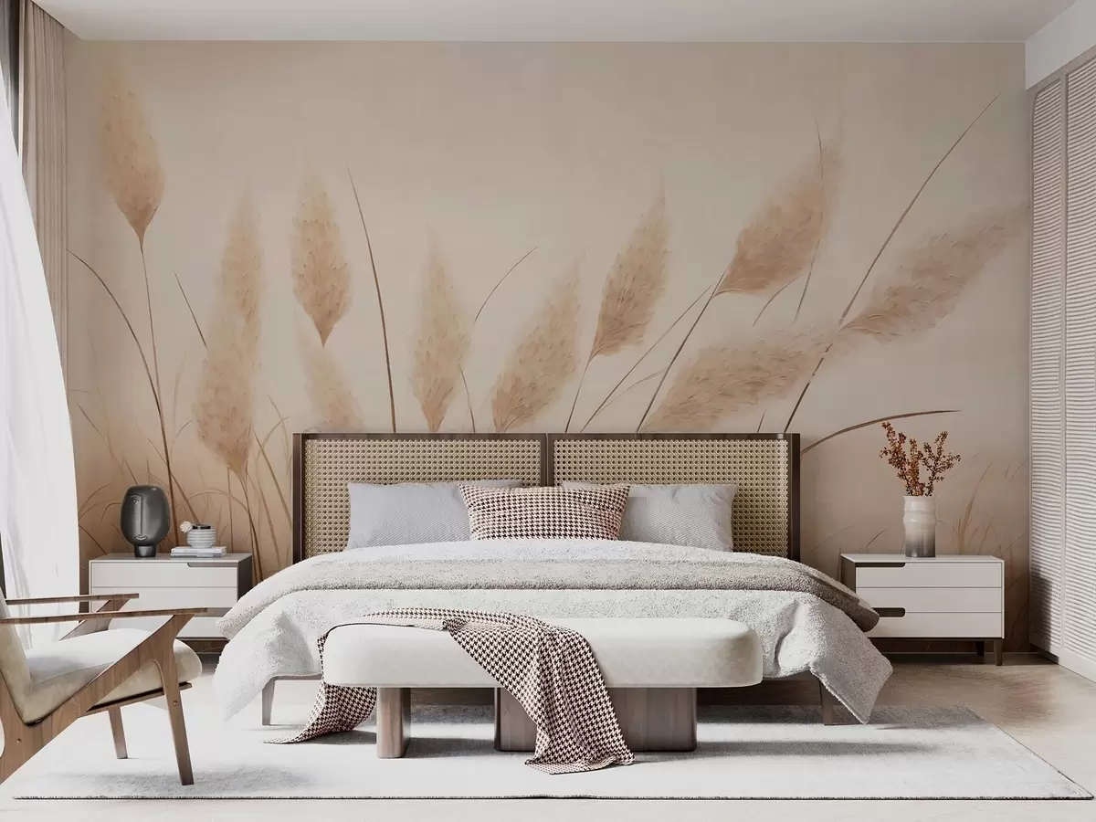 Τοιχογραφίες Απαλό μπεζ χορτάρι πάμπας στο χωράφι Nr. w09324