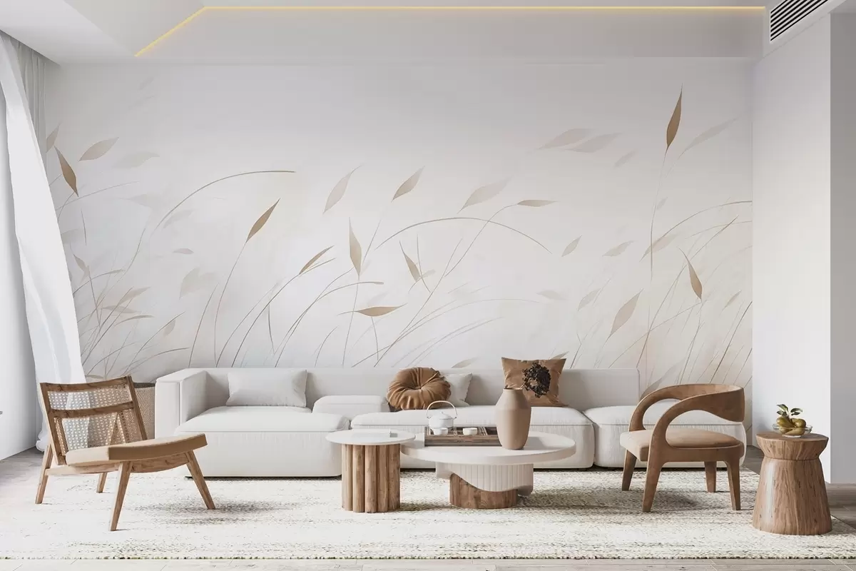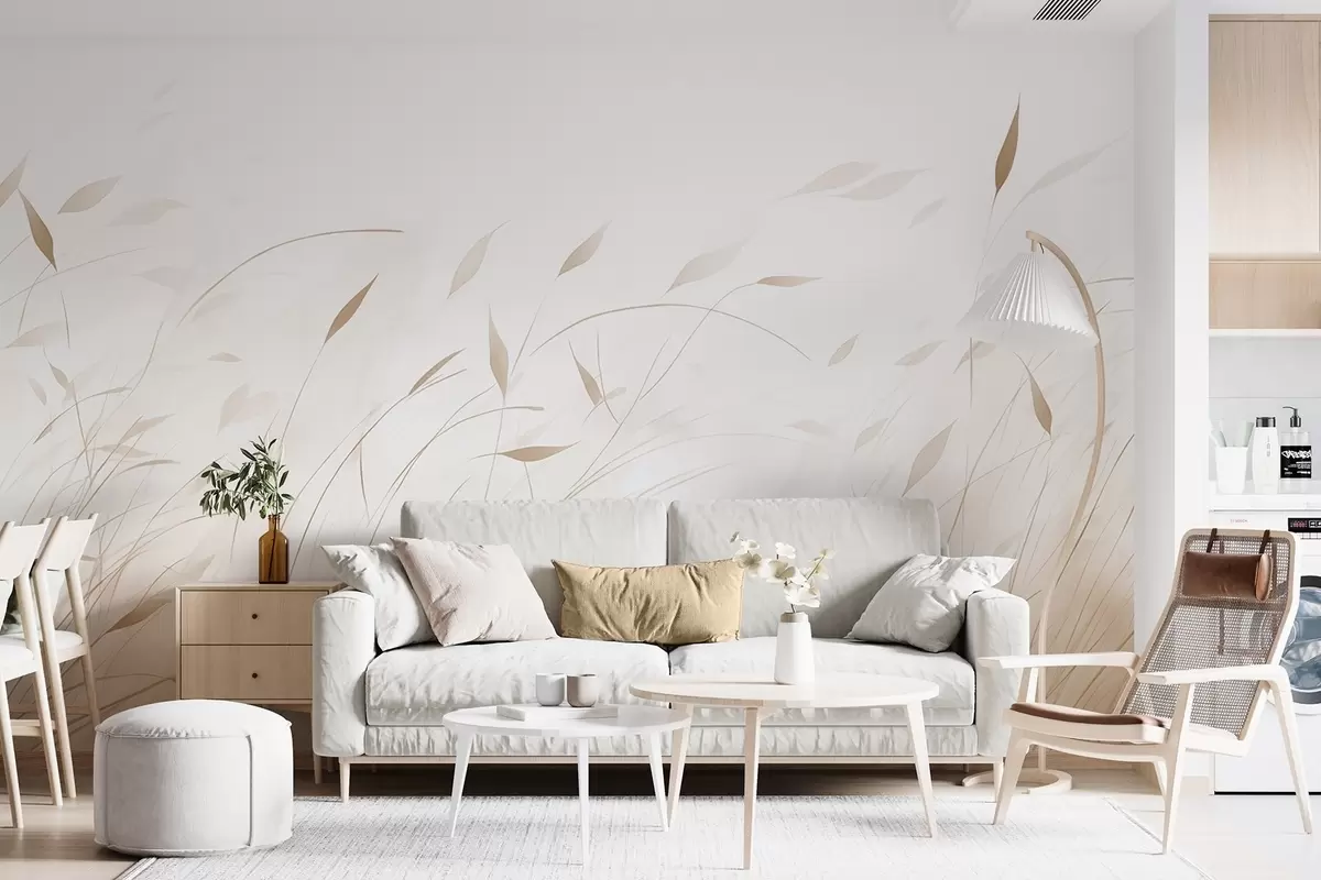 Τοιχογραφίες Γρασίδι στον άνεμο σε στυλ ακουαρέλας σε αποχρώσεις του μπεζ Nr. w09331v1
