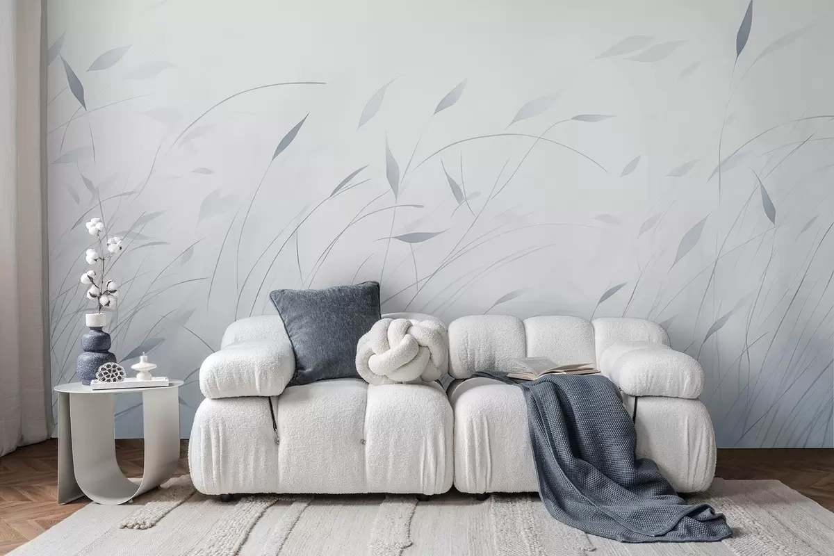 Τοιχογραφίες Γρασίδι στον άνεμο σε ακουαρέλα με αποχρώσεις του μπλε Nr. w09331v2