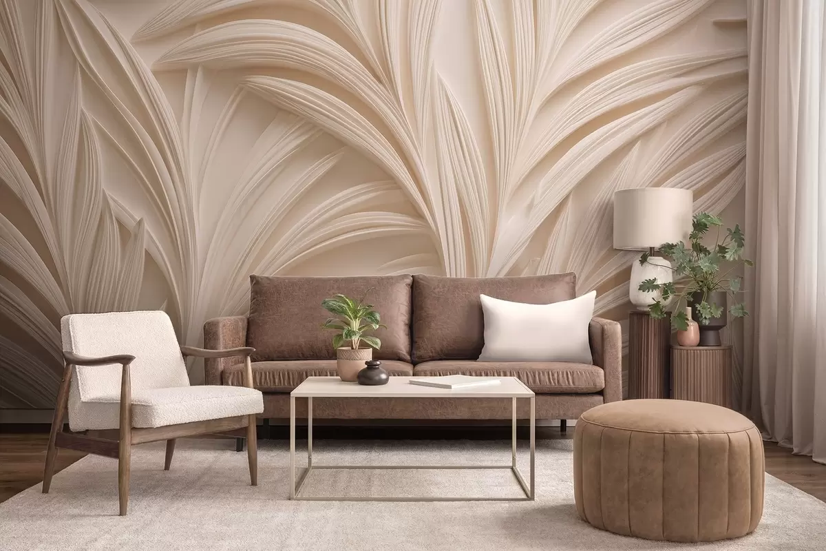 Τοιχογραφίες Διακοσμητικά μπεζ φύλλα σε στυλ 3D Nr. w09351