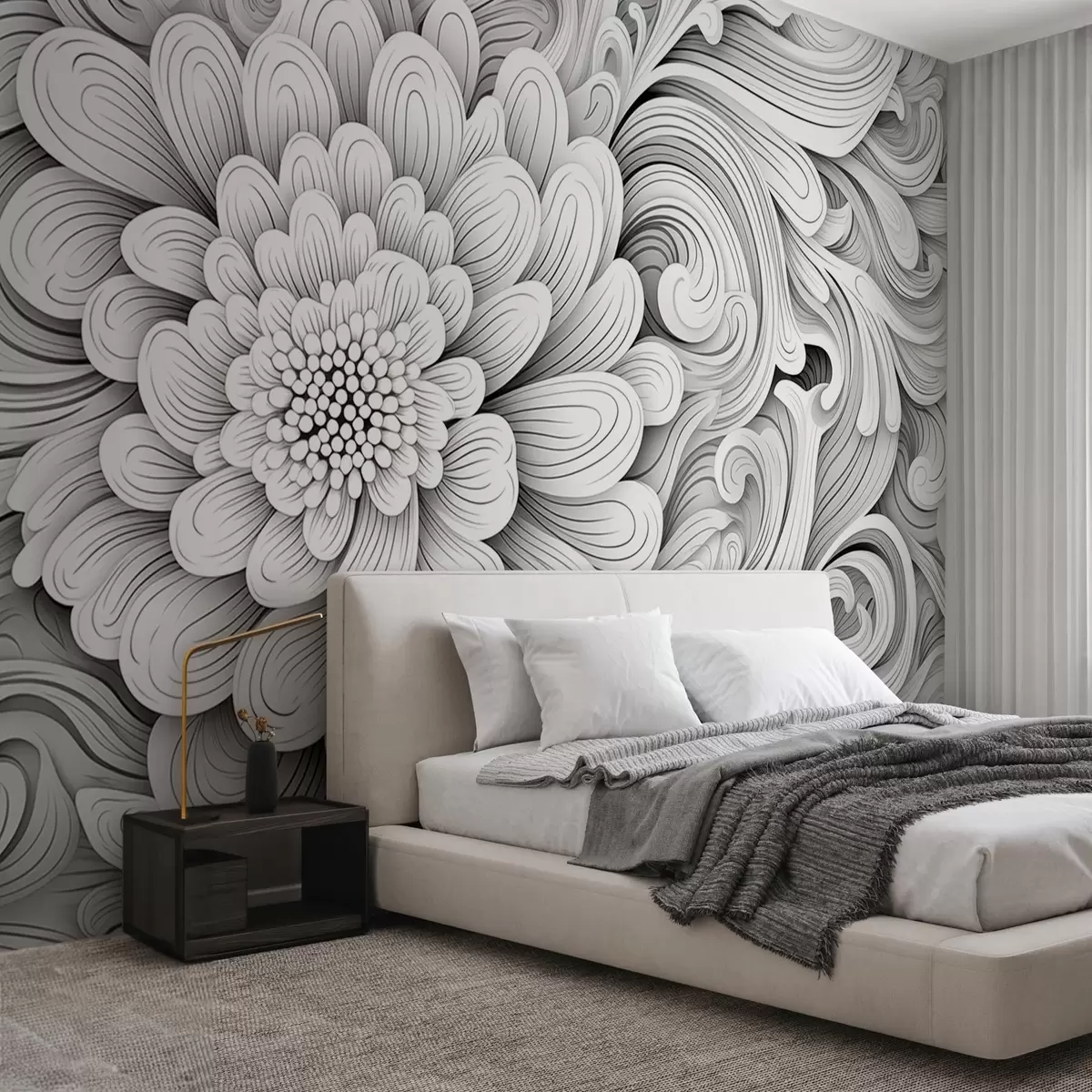 Τοιχογραφίες Διακοσμητικό ασπρόμαυρο μοτίβο σε σχήμα λουλουδιού και στροβίλων Nr. w09355