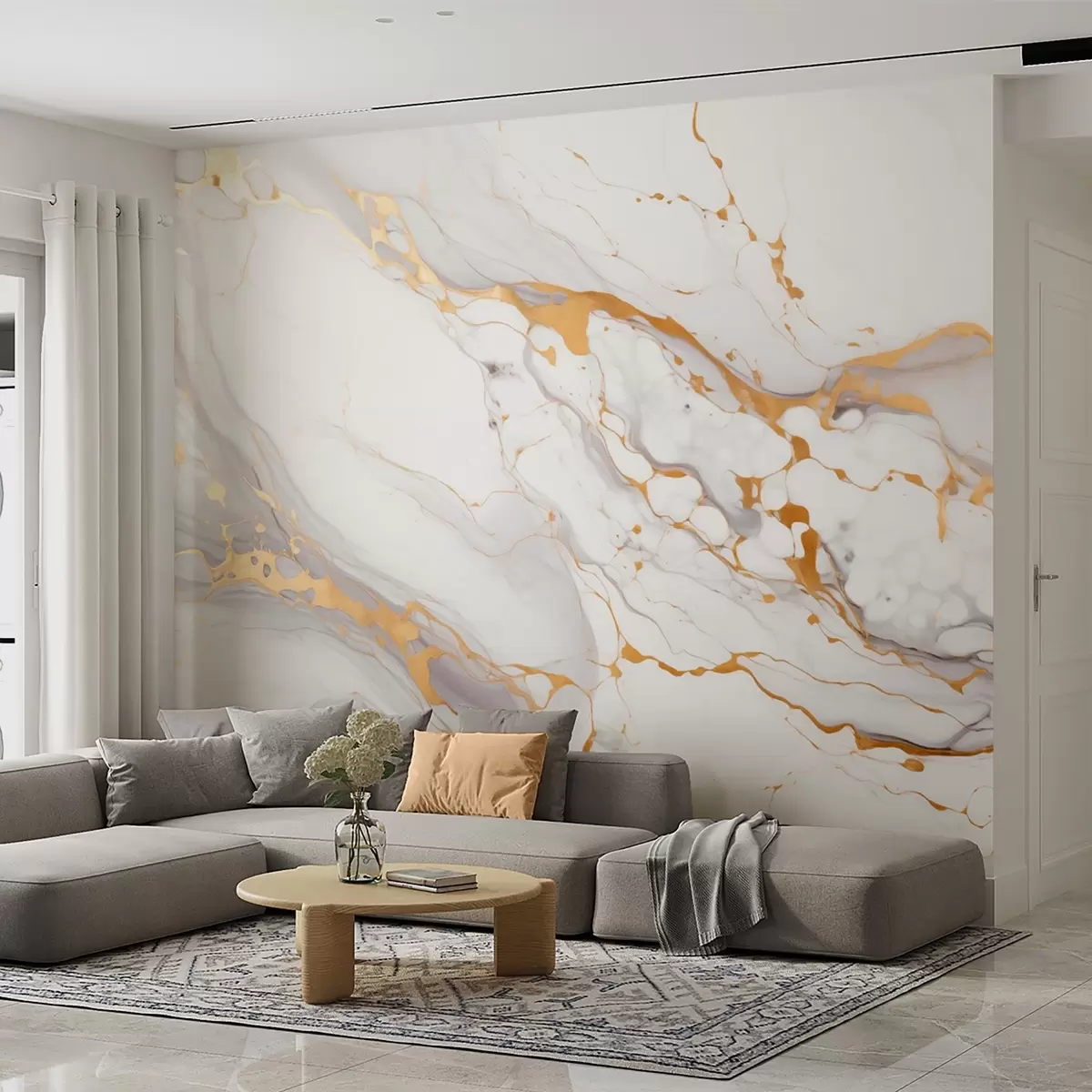 Τοιχογραφίες Απομίμηση μαρμάρινης υφής με απαλές γκρι μεταβάσεις και κίτρινες πινελιές Nr. w09362