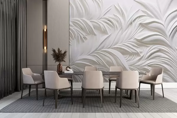 Τοιχογραφίες Αφηρημένη υφή λευκών φύλλων και φυτικών στοιχείων, μινιμαλιστική αισθητική Nr. w09378