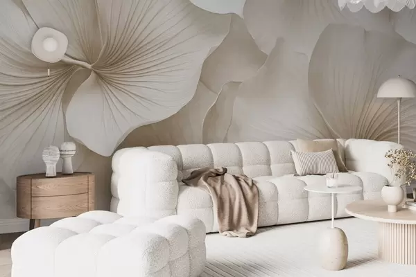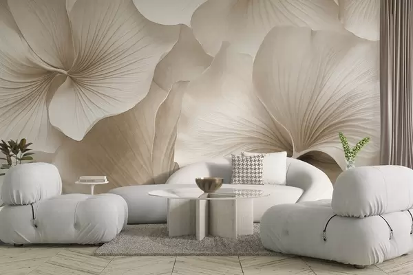 Τοιχογραφίες Λευκά και μπεζ φύλλα γκίνγκο, απαλή υφή, αφηρημένο φλοράλ φόντο, μινιμαλιστικό μοντέρνο στυλ Nr. w09421v1