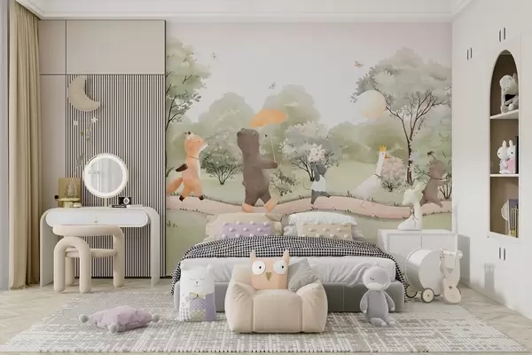 Τοιχογραφίες Εορταστικό ταξίδι μικρών ζώων μέσα στο δάσος σε στυλ ακουαρέλας Nr. w09440