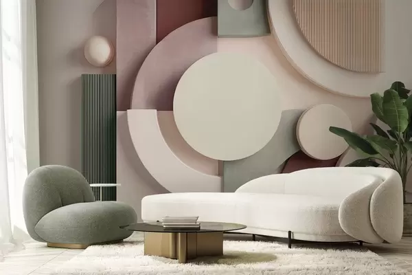Τοιχογραφίες Μοντέρνα ογκομετρική αφαίρεση σε απαλές αποχρώσεις Nr. w09441