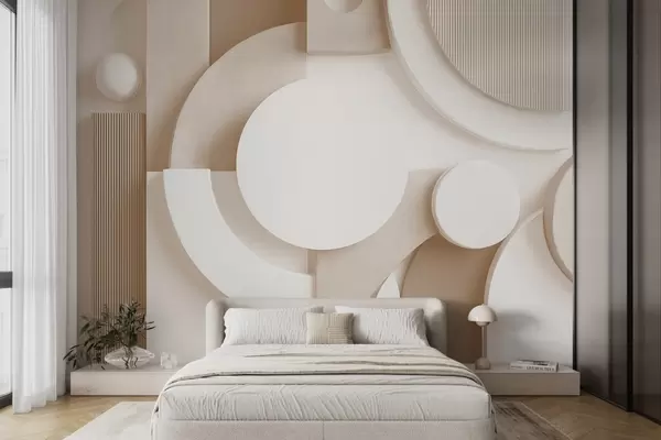 Τοιχογραφίες Μοντέρνα ογκομετρική αφαίρεση σε αποχρώσεις του μπεζ Nr. w09441v1
