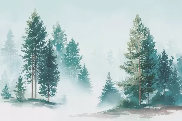 Τοιχογραφίες Ομιχλώδες πευκοδάσος σε στυλ ακουαρέλας Nr. w09444