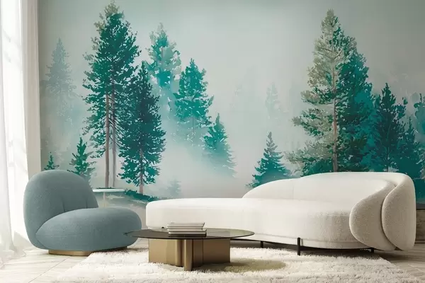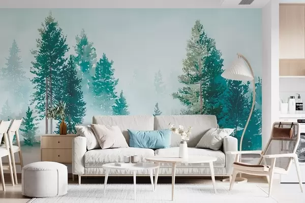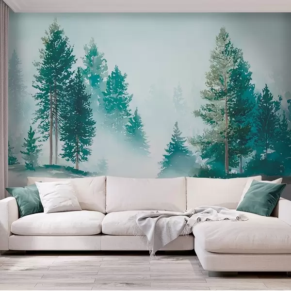 Τοιχογραφίες Ομιχλώδες πευκοδάσος σε στυλ ακουαρέλας Nr. w09444