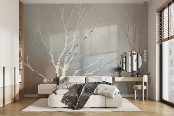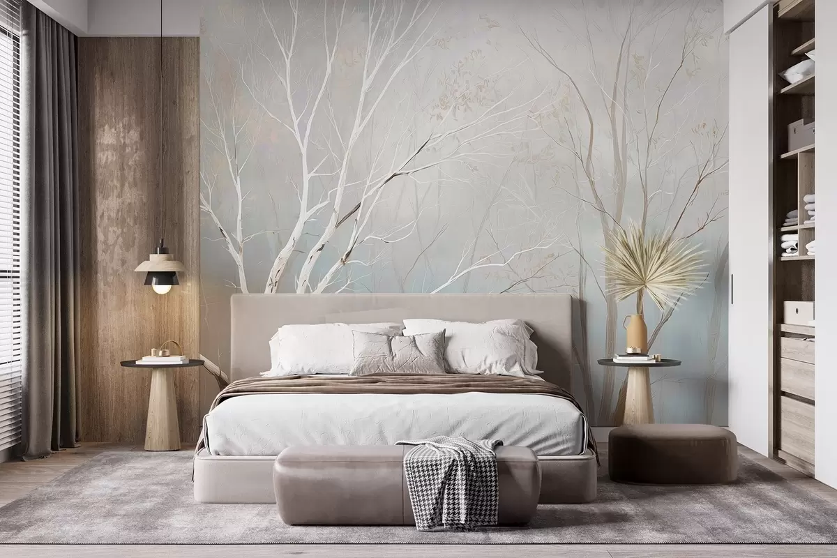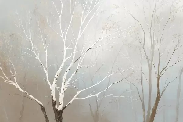 Τοιχογραφίες Ελαφριά κλαδιά στην πρωινή ομίχλη σε παστέλ αποχρώσεις Nr. w09447