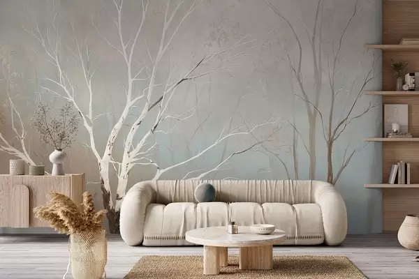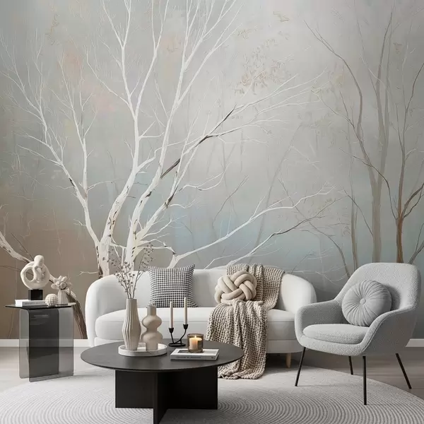 Τοιχογραφίες Ελαφριά κλαδιά στην πρωινή ομίχλη σε παστέλ αποχρώσεις Nr. w09447