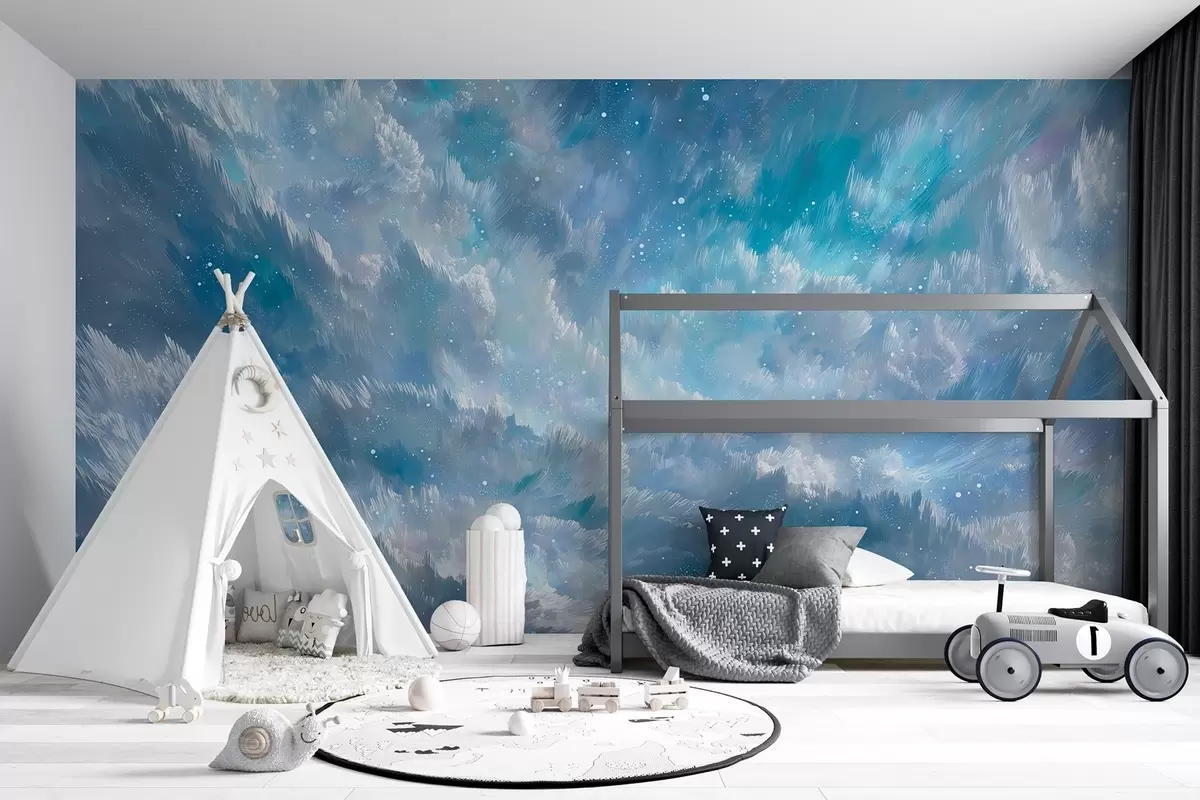 Τοιχογραφίες Ουράνια αφηρημένα σύννεφα σε μια δροσερή παλέτα παστέλ χρωμάτων Nr. w09459