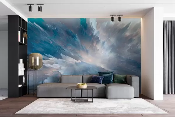 Τοιχογραφίες Αφηρημένη κοσμική λάμψη του ουρανού σε παγωμένους μπλε τόνους Nr. w09461