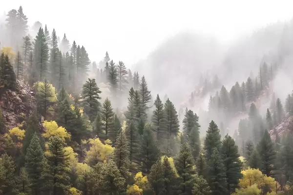 Τοιχογραφίες Ατμοσφαιρικό ομιχλώδες πευκοδάσος στα βουνά Nr. w09463
