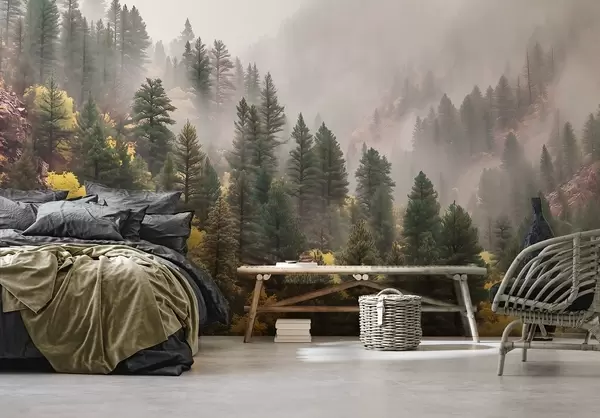 Τοιχογραφίες Ατμοσφαιρικό ομιχλώδες πευκοδάσος στα βουνά Nr. w09463