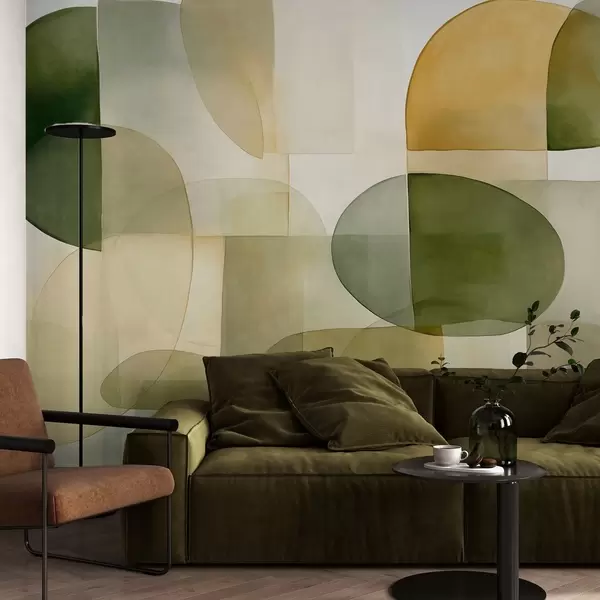 Τοιχογραφίες Αφηρημένα σχήματα με υφή σε αποχρώσεις του πράσινου και του κίτρινου, απαλοί τόνοι, μινιμαλιστική σύνθεση, ουδέτερο φόντο Nr. w09467