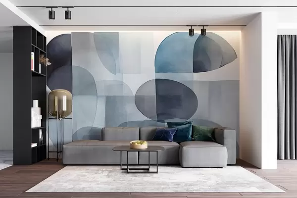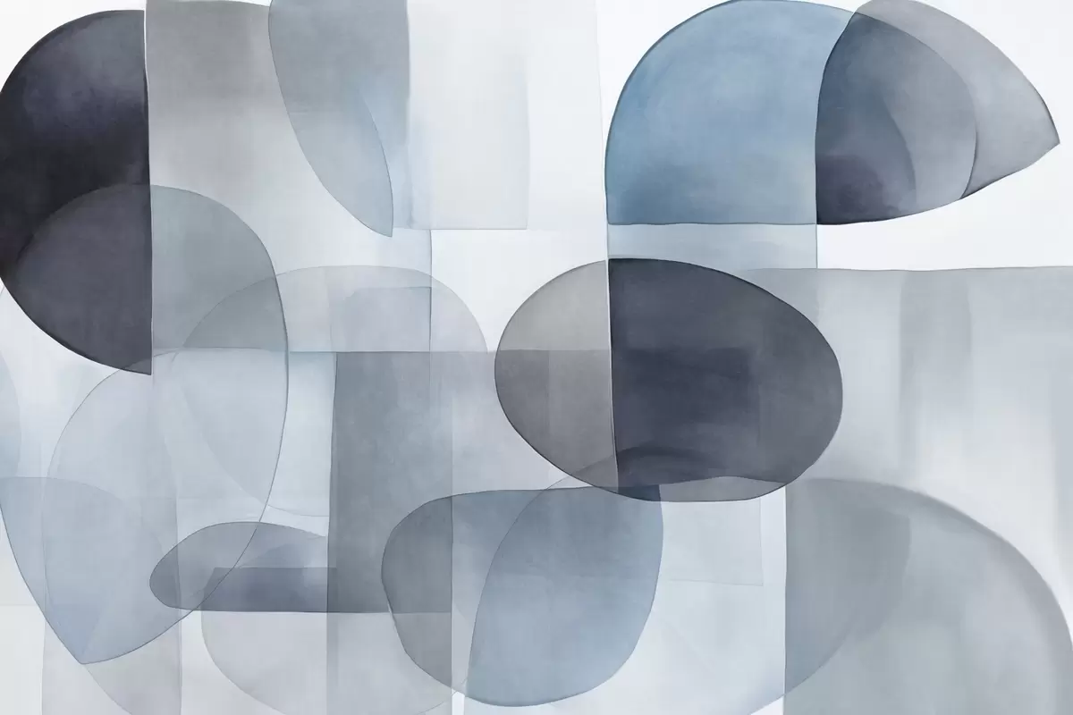 Τοιχογραφίες Αφηρημένα σχήματα με υφή σε αποχρώσεις του γκρι και του μπλε, απαλοί τόνοι, μινιμαλιστική σύνθεση, ουδέτερο φόντο Nr. w09467v1