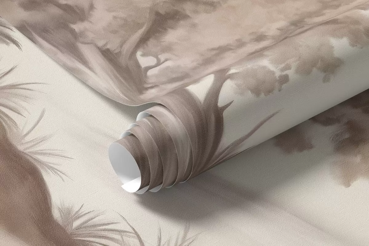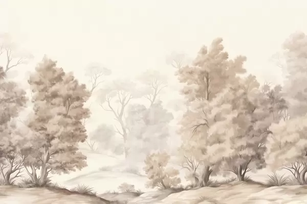 Τοιχογραφίες Ζωγραφική με υφή που μιμείται ένα δάσος με ψηλά δέντρα και γρασίδι, απαλά και ήρεμα χρώματα, γαλήνια σκηνή Nr. w09474