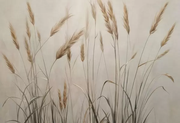 Τοιχογραφίες Αγρός με σιτάρι με κίτρινα στάχυα, μπεζ φόντο, φυσικός φωτισμός, ζεστοί τόνοι, λεπτομερείς πινελιές Nr. w09493