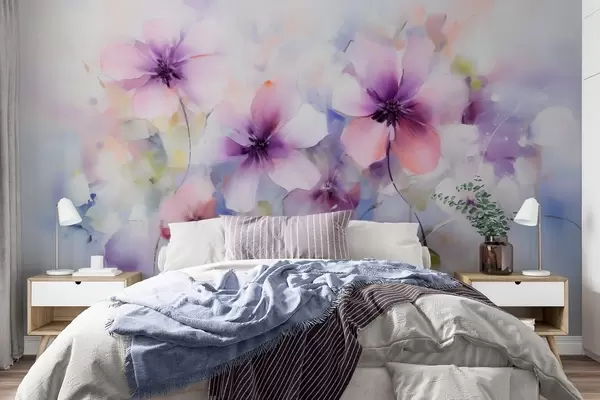Τοιχογραφίες Ανοιξιάτικα λουλούδια σε αποχρώσεις του ροζ και του μοβ Nr. w09502