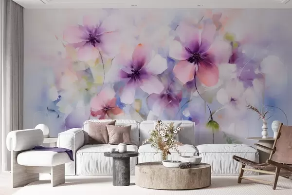 Τοιχογραφίες Ανοιξιάτικα λουλούδια σε αποχρώσεις του ροζ και του μοβ Nr. w09502