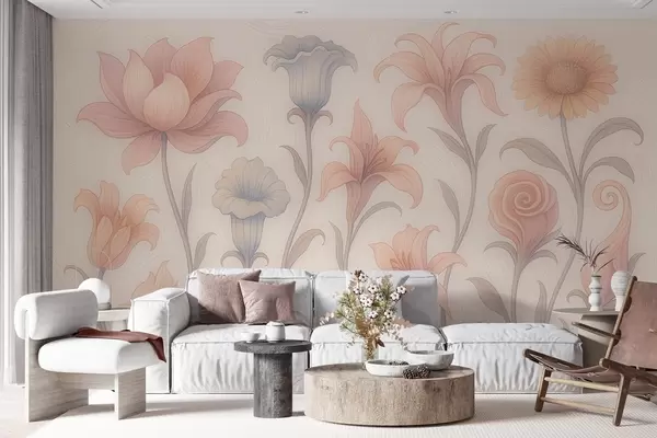 Τοιχογραφίες Απαλή floral σύνθεση σε παστέλ χρώματα Nr. w09503