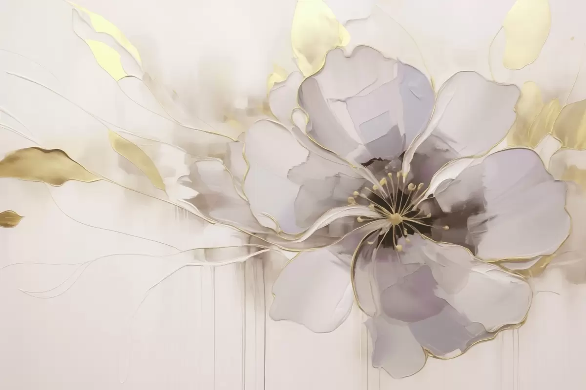 Τοιχογραφίες Μπλε λουλούδι με κίτρινες πινελιές σε αφηρημένο στυλ πινελιών Nr. w09505
