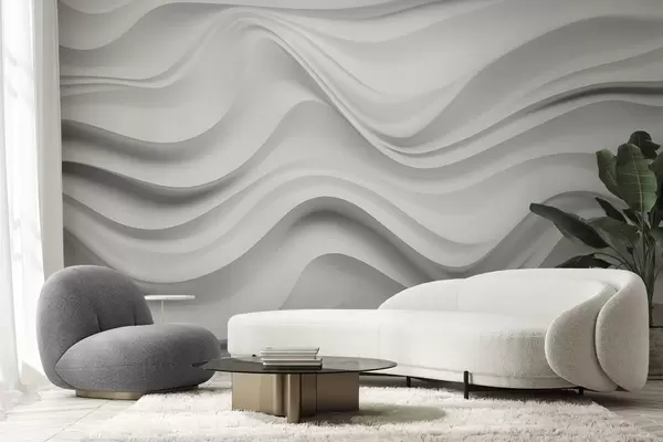 Τοιχογραφίες Ασπρόμαυρη αφηρημένη τρισδιάστατη σύνθεση με απαλά κύματα Nr. w09506